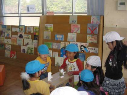 2月4日キッズタウン福西2日目を行いました。1年生は,1日目に受けたアドバイスをもとに,入り口に靴を置くスペースを作ったり貝あわせのコーナーでは赤い色の紙の上で行うようにしたり工夫しながら2日目を迎えました。