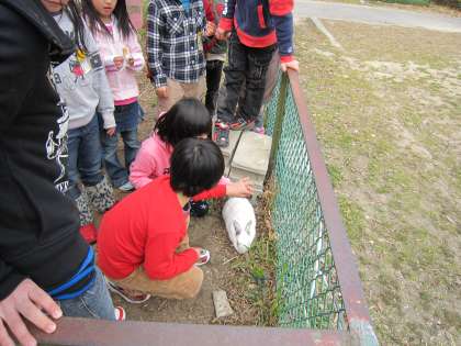 うさぎとふれあい〜1年生
