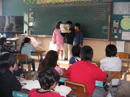 おはよう読書の時間には,5・6年生の図書委員がつくし学級と1〜4年の1組の教室に紙芝居(うめぼしさん,おしゃれなケーキのケーコさんなど)を読み聞かせに行きました。どの教室もシーンとしてお話に聞き入っていました。