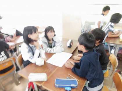 3〜4人グループで,サイコロの目に沿ったお題について話すゲームをしました。はじめは,はずかしそうに話していましたが,聞き手がにこにこしながら,聞いてくれていたので楽しく盛り上がりました。感想では,「ふだんあまり話したことのない人と話せて良かった。」「今度は自分から話しかけてみようと思った。」「○○さんの知らなかったことが知れて良かった。」などがありました。