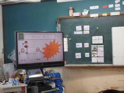 つくし学級の様子です。今日は,いろいろな先生方に応援されながらの学習。いつもいろんな仕掛けのある教室。今日は宝箱が登場しました。