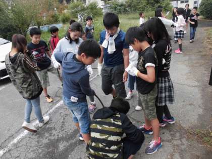 イチゴはリーダーの子どもたちに代表して植えてもらい,ホウレンソウはみんなで土に穴をあけて種をパラパラパラ…っと。