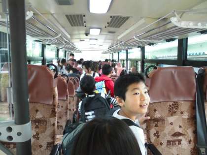 大きな荷物を抱えて順番にバスに乗り込みました。自分の席を探します。