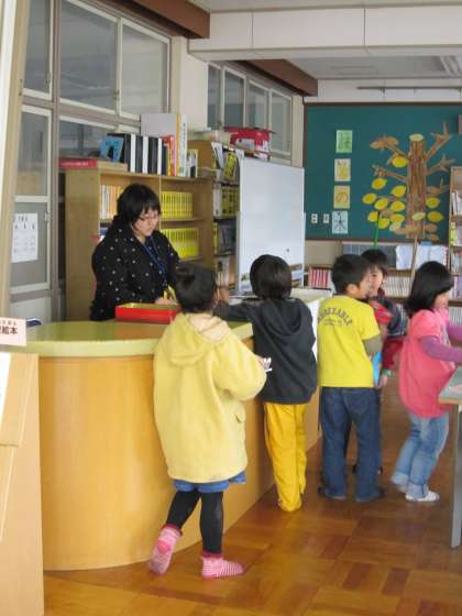 1年生は,図書館へ行って本を借りたり読んだりしていました。どの子も自分の読みたい本を選んで,静かに本を読んでいました。