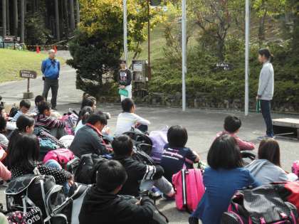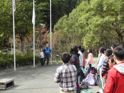 その後、校歌を歌いながら、旗を揚げました。そした、所員さんから花背山の家での注意事項などを聞きました。