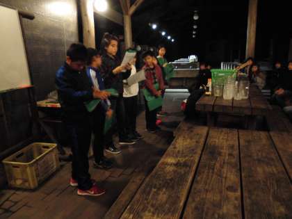 ナイトハイクを終えた後、一日目の活動をふり返りました。