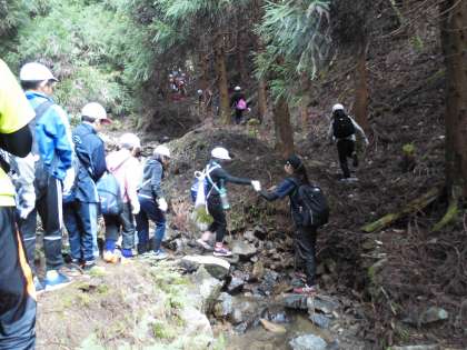 雲取山へのルートには、一人で歩くには少し難しい場所が所々あります。ボランティアの先生の力をお借りして安全に登って行きました。
