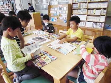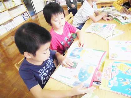 生活科『あきといっしょに』の,遊び計画が進行中です。前回出た子どもたちの意見をもとに,いろいろな遊びやおもちゃ作りを考えていくことにしました。今回は,図書館でどんな遊びが考えられそうか調べました。思っていた以上の遊び方が見つかったようで,あれがしたい,これがしたいと,たくさんのイメージがつかめた様子です。