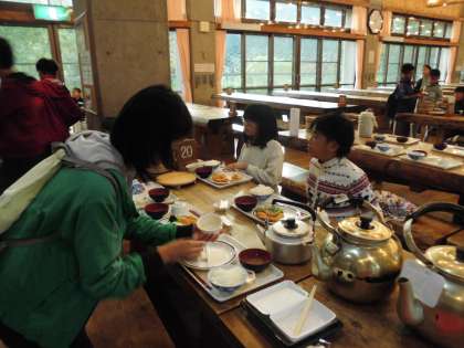 食堂での食事も3回目。夕食では、初めてですが、もう、こちらの方から何も言わなくてもスムーズに準備をして、