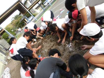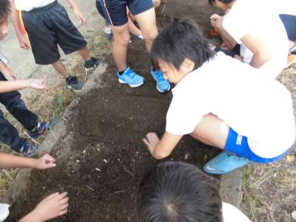 自分たちの大根意識を持たせるために,各班で畝を作り,種まきをしました。