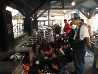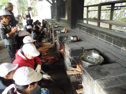 お米、材料の準備ができたら、かまに火を入れます。これも前回より順調に進んでいきます。今日は、心強いメンバーも増えていたので、よけいにスムーズにいきました。
