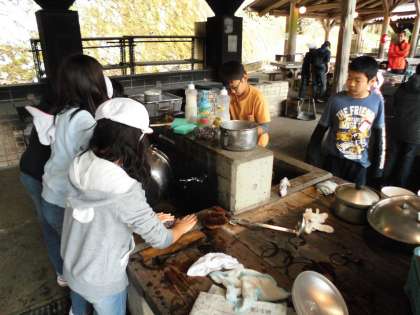 使った食器、お鍋を手際よく洗っていきました。かまどの片づけもしっかりとやりました。最後は、所員さんに「合格」をもらえるまで頑張りました。予定よりずいぶん早く片づけを終えることができました。
