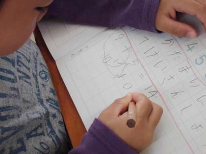くり上がりのあるたし算の学習をどんどん進めています。『10のかたまり』を作って計算することを繰り返し,頭の中でイメージしながら計算できるように練習しています。