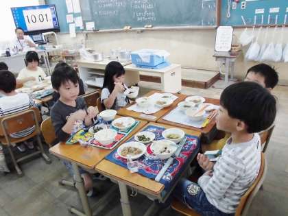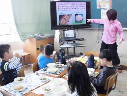 先週・今週と栄養教諭が来てくださった1年生。ちょうどいいタイミングで,今日は和み献立の日でした。今日のメニューの目玉は『しば漬け』だったのですが……子どもたちは,