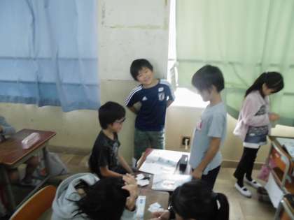 4年生外国語活動では,"Go Fish"というゲームをしながら,文房具の名前,do you have の言い方に慣れ親しみました。また,自分が作った文房具セットを友達に伝える活動も行いました。