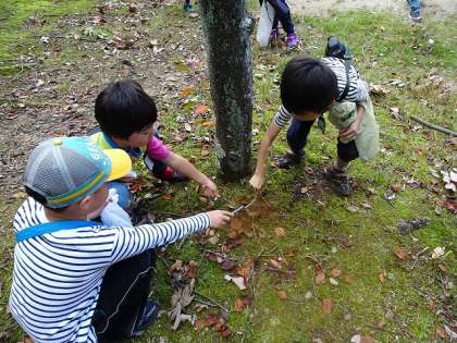 福西公園へ秋見つけに行きました。生活科の『秋といっしょに』のグループ活動で使えるような木の実や葉っぱを拾います。学校の中よりも,たくさんある秋の恵みを見つけて,夢中になっていました。