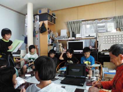 午前中は3つに分かれてインタビューに行きました。増戸さんのお宅では,西山に生息する植物や動物の名前などを教えて頂きました。また,自分の好きなことを続けてやりきる力をつけてほしいと子ども達にメッセージを贈ってくださいました。