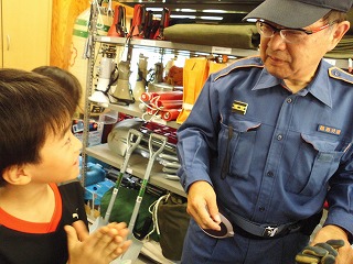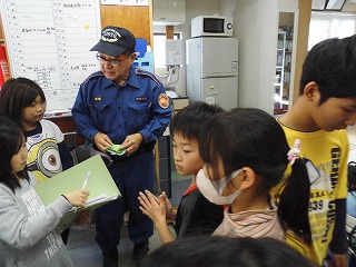 ぼくらのまちを安全に守っている人たち,消防団の方々にインタビューをし見学してきました。普段使う道具や,どんなものを置いているかを見せてもらうこともできお話することができました。「どうやったら消防団に入れるのかな?」,「なんで消防団になったの?」など直接お話を聞くことができました。お話を聞いて,ますます「僕も,人助けをしたいな。やってみたいな。」と気持ちになりました。