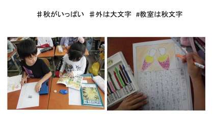 国語「秋がいっぱい」でカードを作りました。とっても素敵なカードができて,最後はグループで交流しました。