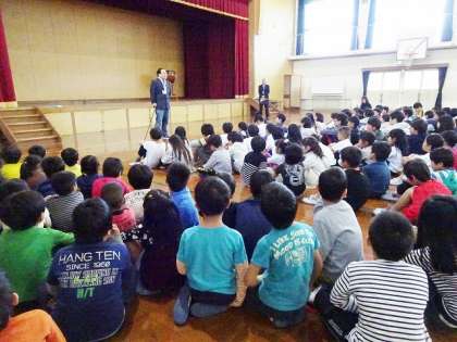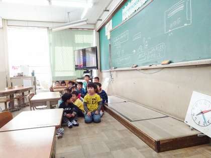 今週の水曜日,防犯訓練がありました。写真の1枚目は,第一次避難で教室の端に集まり,第二次避難に備えている様子です。災害とはまた違った避難訓練の雰囲気に,子どもたちもドキドキしていたようすです。