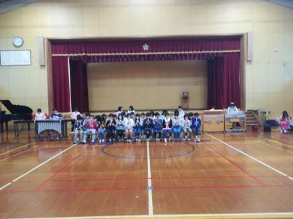 体育館での初めての合唱・合奏でした。通して曲を演奏しながら,音楽室とのきこえかたの違いや,音量のバランスなどをみていきました。隊形移動なども合わせて次の練習で確かめられるといいと思います。楽しそうに合唱・合奏をしていました。
