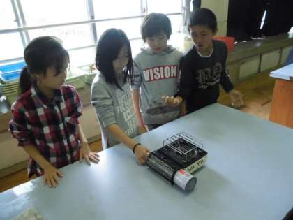 今日は実験用ガスコンロとアルコールランプの使い方について学習しました。実験用ガスコンロは扱いやすいですが,きちんとガスボンベを差し込むことに注意が必要です。アルコールランプをつけるために,マッチをはじめて使う子どももいましたが,落ち着いて手際よく火をつけることができました。