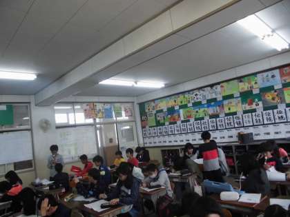 社会のテスト前の様子です。男女なかよく問題を出し合うなど,協力し合える姿が見られています。