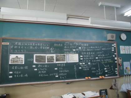 写真や年表から疑問などを出し合い学習問題を設定する1時間でしたが,子ども達のアクティブな発表に板書が整理できないほどでした。