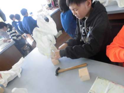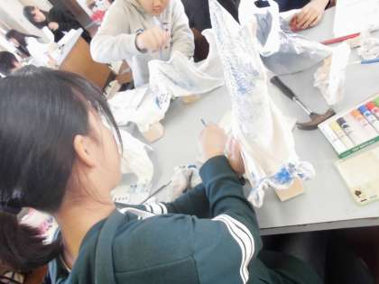 図工室では絵の具や画用紙を使って,さらにアート作品にチェンジ。