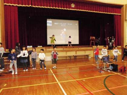 明日は『音楽の森』です。つくし学級の演目では,交流学年・学級とコラボレーションする発表があります。今日のリハーサルでは,本番通り交流隊と一緒に踊ったり演奏したりしました。
