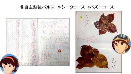 2年生の自主勉強は,2学期よりバルスアップしています。パズーコース(興味関心あることをとことん調べる学習)とシータコース(学習したことをどんどん練習していく学習)で取り組んでいます。
