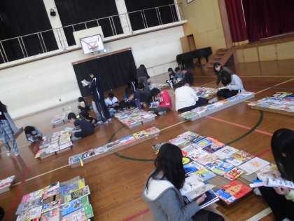 6年生 選書会会場も読書週間の様子