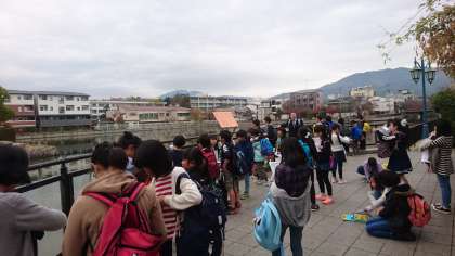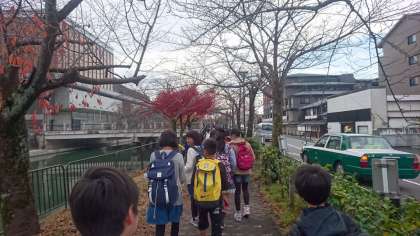 社会科で学習している「琵琶湖疏水」を今日は実際に見学に来ました。バスを降りて,みんなで歩いて,ロームシアターまで来ました。