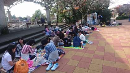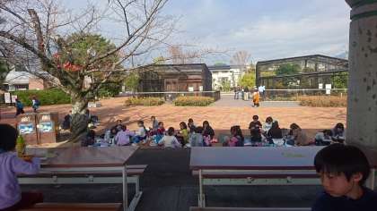 午前の部の見学が終わり,動物園に来ました。ここでお楽しみのお弁当タイム!