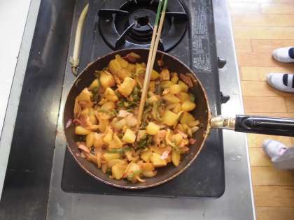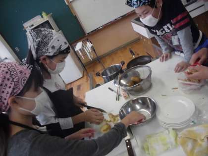 子ども達は家庭科室の利用には慣れたもの。5年生の初めに,どこに何があるのか調べ学習をしてスタートしたのを思い出します。