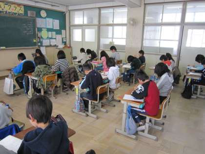 4年生はこの日,鉛筆を使っての書写の練習をしました。いつも使い慣れている鉛筆ですが,1年生のときに習ったことを忘れがちです。この日は1年生で習ったことを思い出しながら練習を進めました。