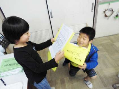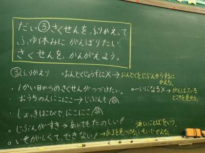 生活科『にこにこ大さくせん』の作戦も,いよいよ山場となりました。冬休みに向けて,どうしたらお家の人が笑顔になってくれるのか,試行錯誤を繰り返し頑張ってきました。個人懇談会でも,