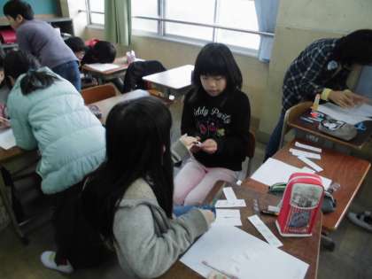今日は,フルーツパフェを完成させるために,友達から果物をもらう必要がありました。そこで「〜がほしい。」と言う言い方に慣れ親しみました。いくつほしいのかについても"How mant〜?"と聞いて,その数を渡していました。少しずつやりとりにも慣れてきて,思い思いのパフェをつくろうとしていました。