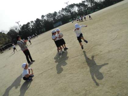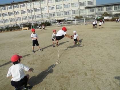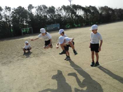 先週,1組と2組合同体育で縄跳びをする子どもたちの様子を見ました。グループごとに大縄を使っていろいろな跳び方を楽しんでいましたよ。☆