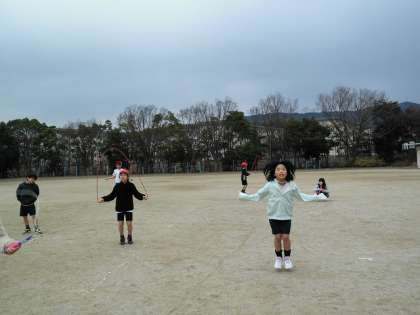 後ろ跳びやかけあし跳びに苦戦していますが,お友達とアドバイスをし合って