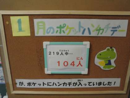 福西小学校の約半分の人がポケットにハンカチを入れていました!