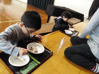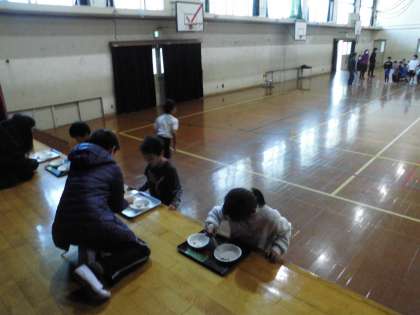 給食週間です。給食委員会による「豆つまみ大会」〈1・2・3年の部〉が行われました。おはしを使って左のお皿から右のお皿へ豆を移して次の人へリレー!3年生のチームが上位を占めましたが,1年生,2年生のチームも大健闘でした。これからも「上手におはしを使って食事を楽しみましょう。」