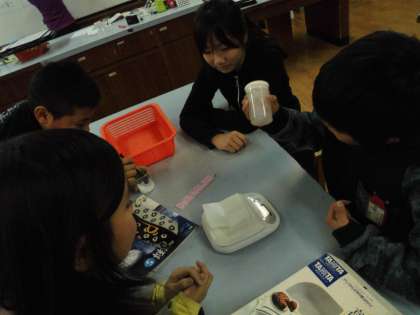 理科「もののとけ方」の学習です。「食塩が水にとけて見えなくなったら重さはどうなるの?」について実験しました。自分の考えを進んで発表する子,正しく丁寧に実験を行う子,協力して結果を確かめ合う子…様々な子どもたちのがんばり☆が見られました。