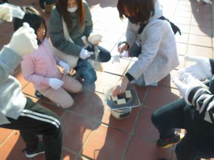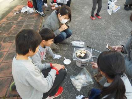 火をつけることや火加減など,普段の生活では,それほど困りのないことです。しかし,七輪を使ってみると思うように火がつきません。「どうすればいいのかな」と,みんなで知恵を働かせながら,七輪と向き合いました。最後はおいしいおもちをみんなでいただくことができました。保護者の皆様,ご協力ありがとうございました。