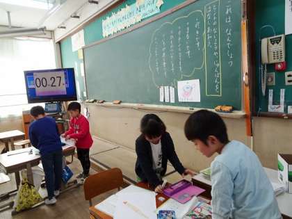国語科の『これは,なんでしょう』では,学校にあるものからクイズを出す学習をしています。大切なことは,友だちと話し合って,クイズの答えやヒントを作ることです。