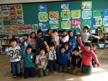 今日の児童朝会で,給食委員さんから『ペロリ賞』をもらいました。『ペロリ賞』とは,給食のお残しが少なかったクラスに送られる賞です。1年生は,2組が3位入賞でした。