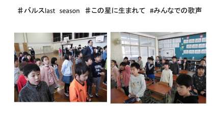 今日は「ありがとうの会」でした。2年生の代表は,まなび教室の先生へ感謝状をおくりました。そして最後には,全校合唱のプレゼント。「この星に生まれて」です。ドリームはカムしたか?いやこれからみんなでテュギャザーしていこう。