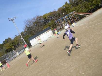 サッカーの学習ですが男女で協力し合っています。どのチームもナイスバルス!