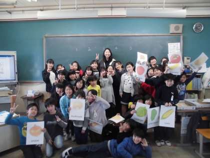 今日は,スー先生との最後の授業でした。学習の最後に,フルーツバスケットをして楽しみました。とても元気で楽しく学習できました。ありがとうございました。