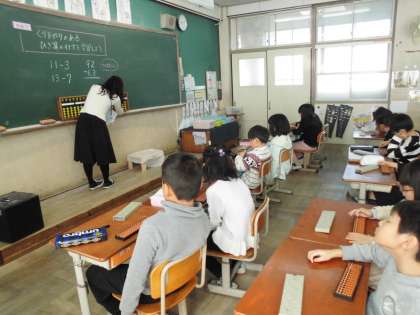 今では,あまり使われなくなったそろばんによる数の表し方を知って,簡単なたし算やひき算の仕方を学習します。けして,速さは要求しません。大事なのは数の入れ方とはらい方を知り,「正確に」操作するということです。